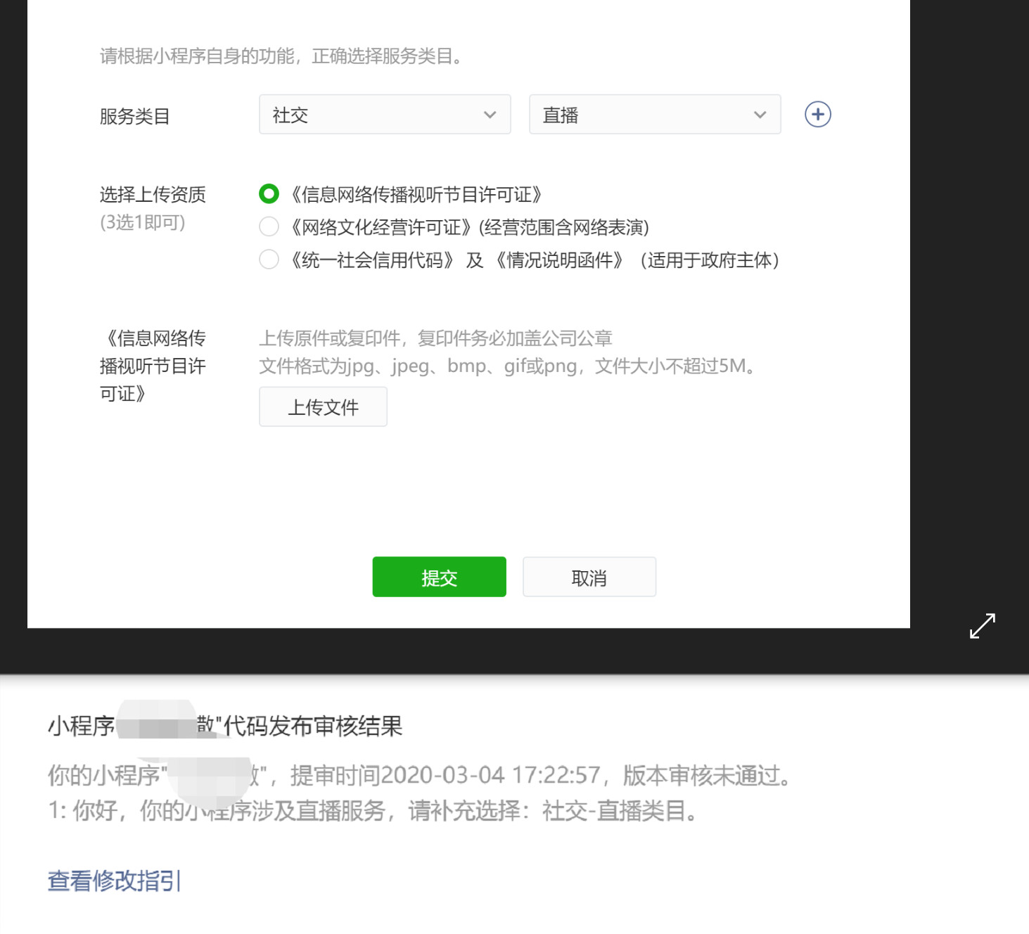 我不是使用小程序直播组件,我们平台是做直播电商的,然后app里面直播,小程序拉去直播列表观看,评论,点赞 买东西,但是提交审核的时候你们驳回了,说要添加直播类目,但是目前广东地区不受理 办 “文网文证书”,我们申请了,官方不给办理,广东的,我们子公司“合肥炫音文化传媒有限公司”目前是有“文网文证书”的,我们礼娱控股99%,我提交我们子公司的文网文,可否通过。因为广东地区现在不受理“文网文证书”,如果真的必须要主体一致,我们现在根本没法做,不是我们不去办理,是官方不受理我们没办法办,或者有什么其他办法嘛