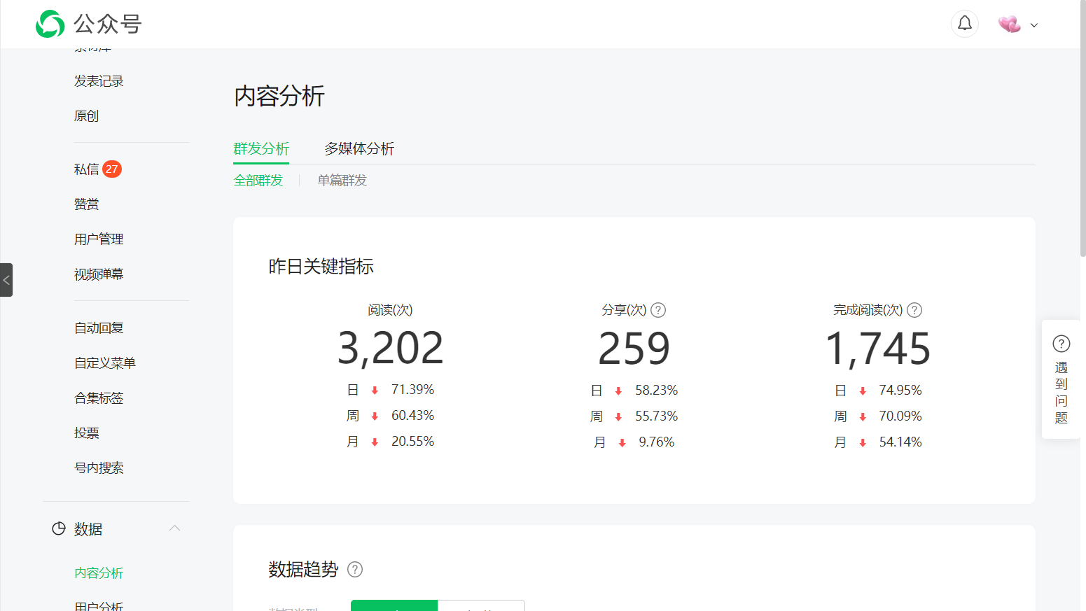 尊敬的审核员,想请问一下,为什么我的公众号(一生与您相伴)【id:gh_a7ee35fc91cb】突然之间文章没有推荐,阅读断崖式下降,正常每天发原创作品,没有任何违规提示,麻烦官方大大告知原因。