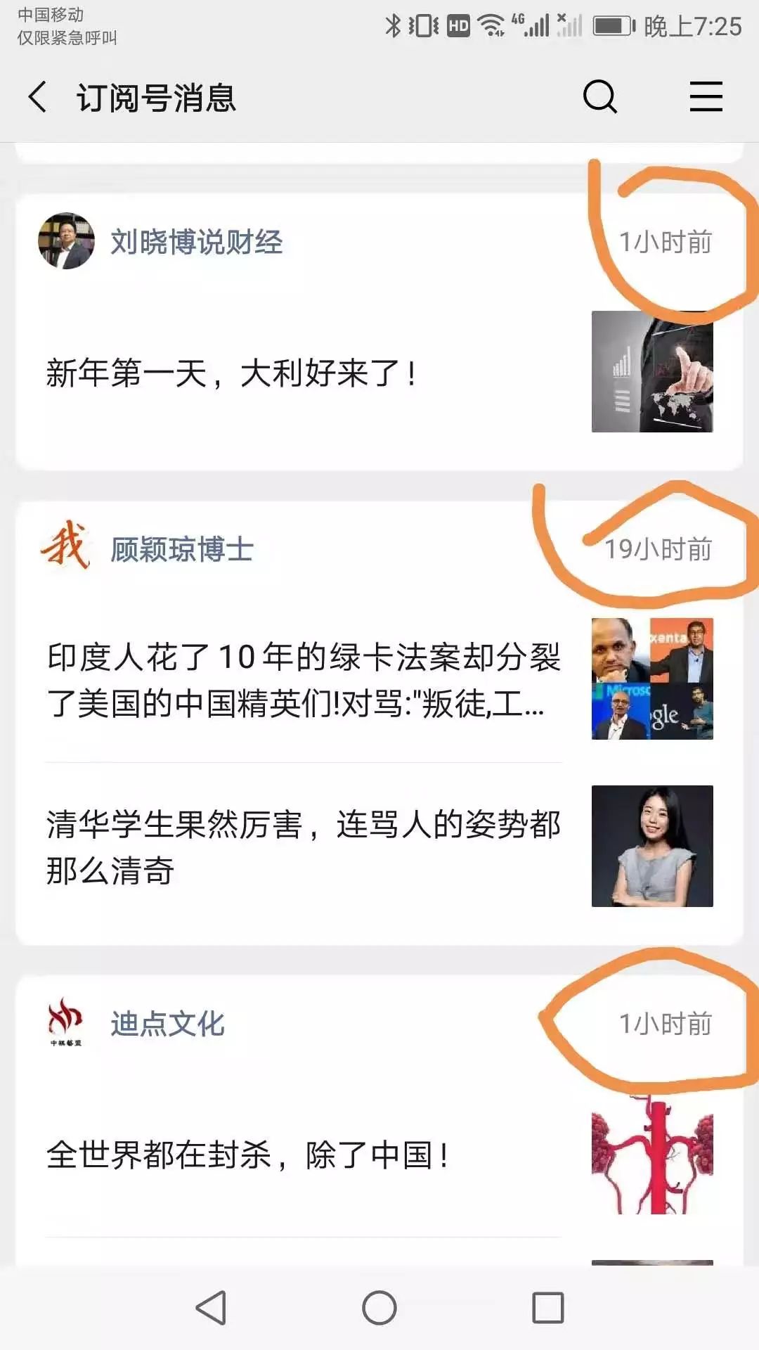 我是华为手机,更新7.0.10后,关注的公众号,乱弹出来,一会是一分钟前一会又是昨天的,如图: