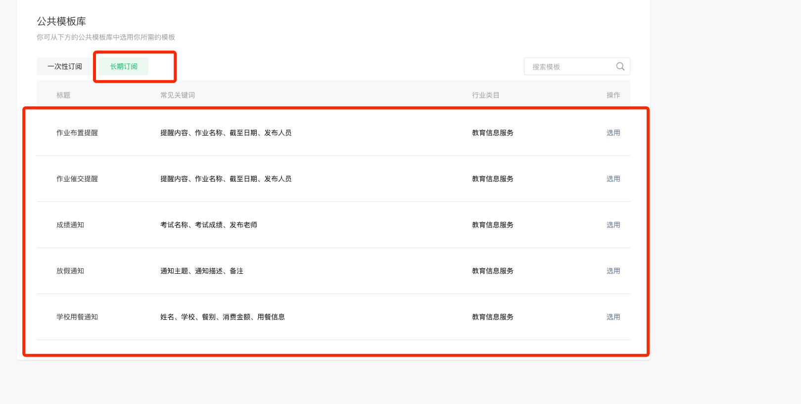 你好,长期订阅消息目前暂不支持线上申请新增模板。