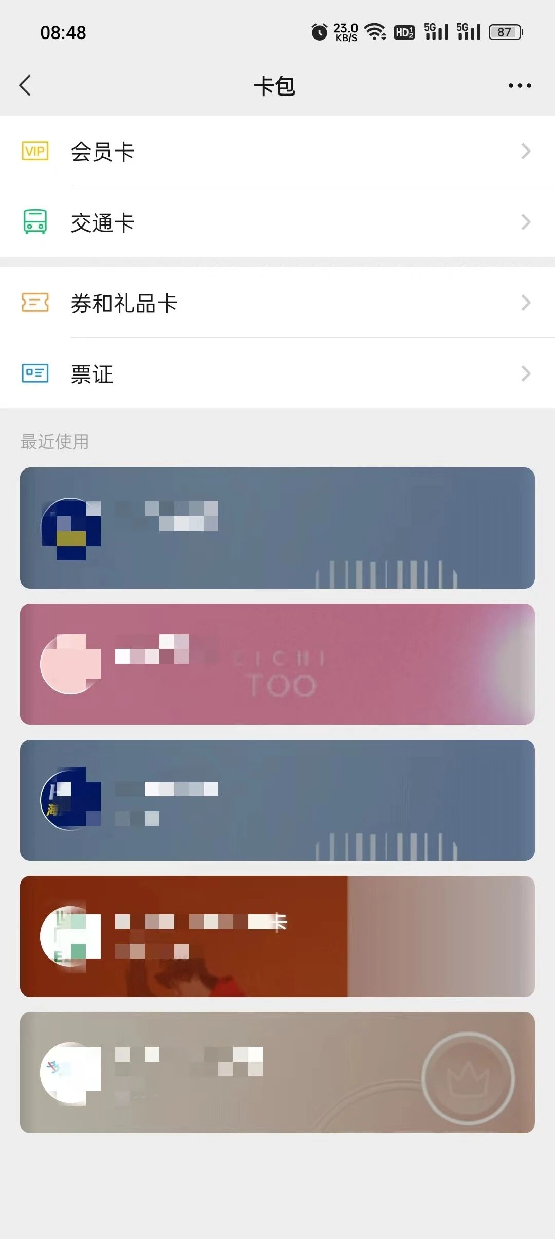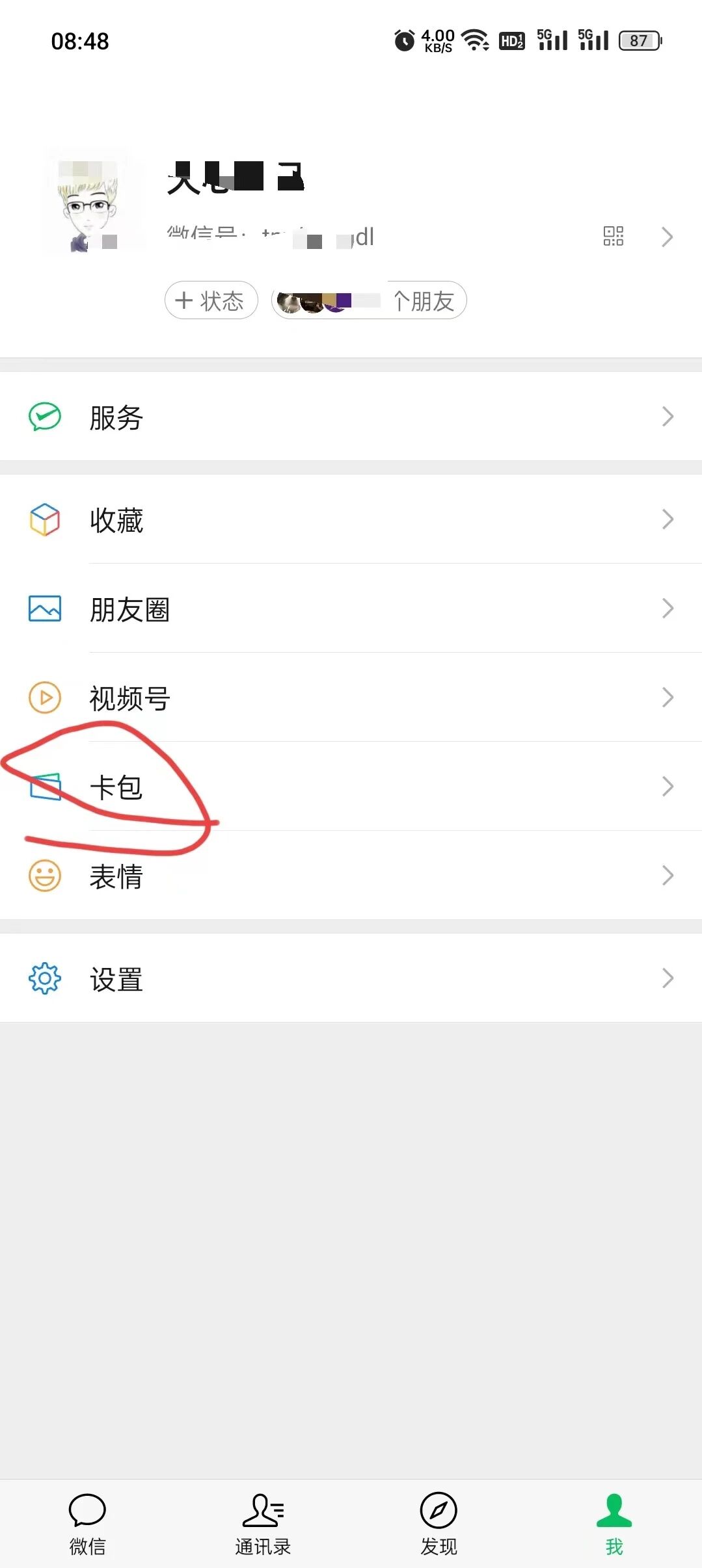 微信-我的-卡包有自己领过的微信会员卡;入口见下图