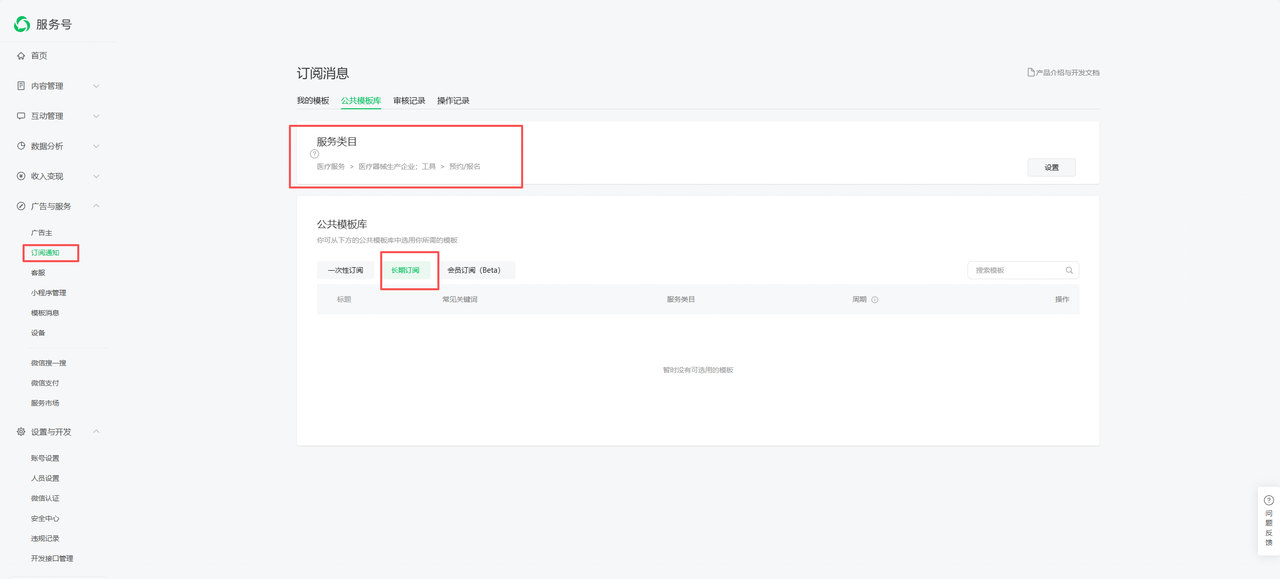 到底要申请哪个类目,才有长期订阅的接口啊?不是说涉及政务民生、医疗、交通、金融、教育等线下公共服务其中一项,则默认就会有长期订阅消息的入口吗?