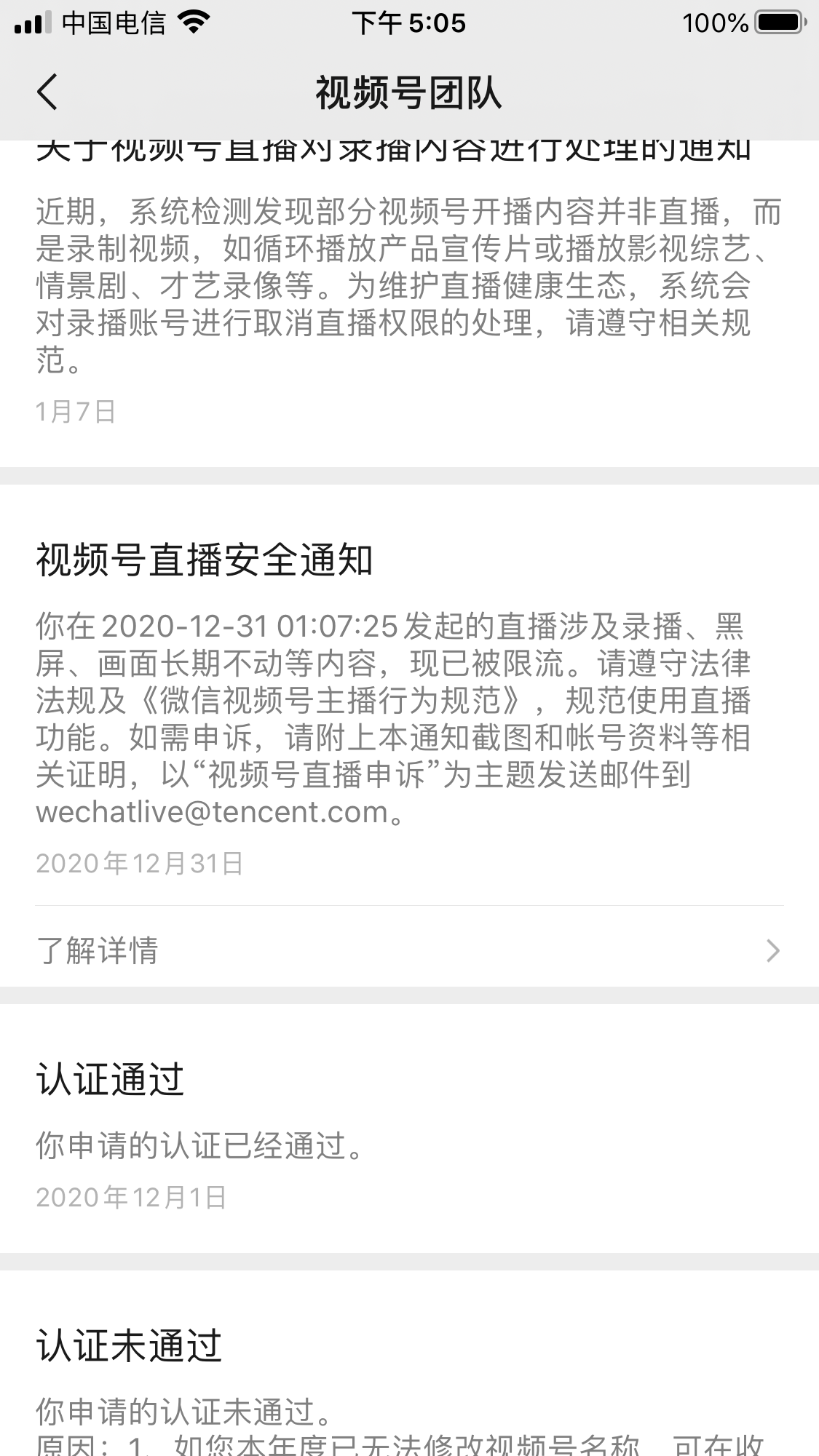 由于网络差导致直播画面没动,系统判定我空播,我以为系统判定该场直播限流,可是后期我几场直播一直没啥流量!我直播的时候我用别的号没有显示我这个号在直播,而且我用别的号在附近和直播都看不到这个号直播,直播间一点流量都没有,也就是除了朋友圈没有其他流量,微信号:shidongliang111,视频号,一叶一菩提原矿绿松石,希望领导能看看,我们认认真真的做努力做视频号,不能这样无限期拖下去啊,申诉了,没人理!希望能给个机会,谢谢 麻烦各位领导了! 谢谢