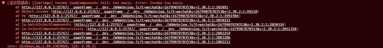 [渲染层错误] [jsbridge] invoke loadComponents fail: too eayly.