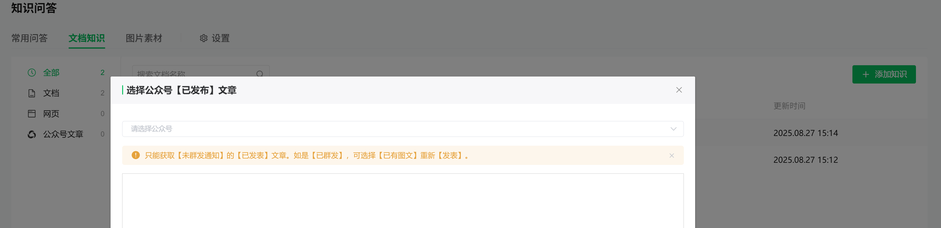 公众号的智能回复知识库目前自动抓取文章,存在问题: