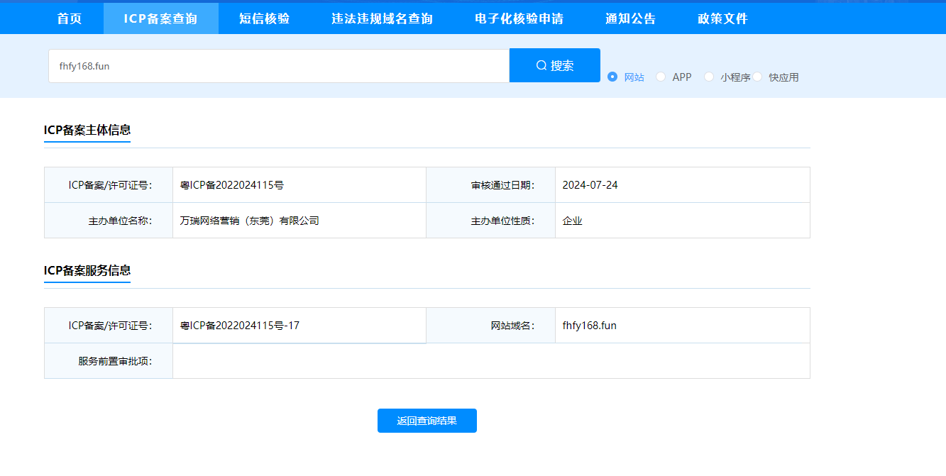 fhxz168.fun 这个域名6月27审核通过了,也是提示非官方