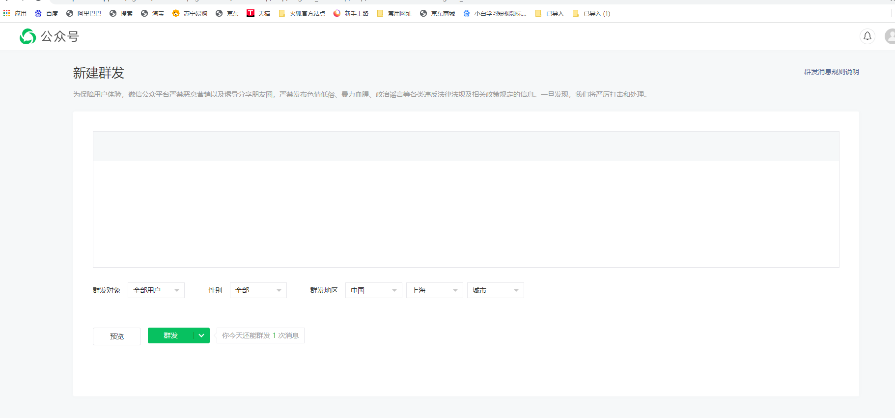 目前这个页面,点预览显示请点击预览的素材,点群发也没反应,也回不到之前编辑页面,如何办,非常急,谢谢