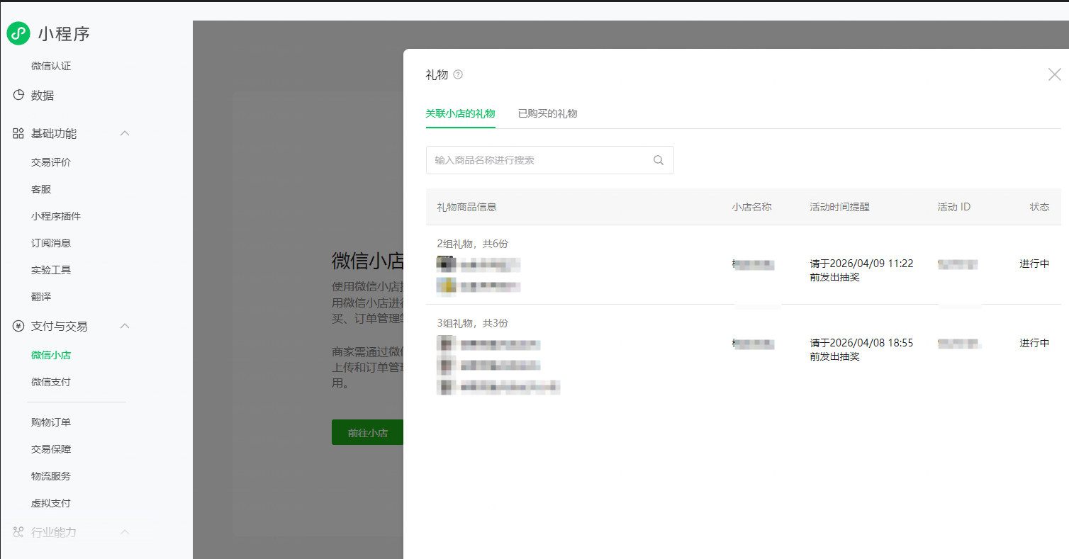 2 微信小店后台 礼物抽奖 活动也是创建的渠道为小程序