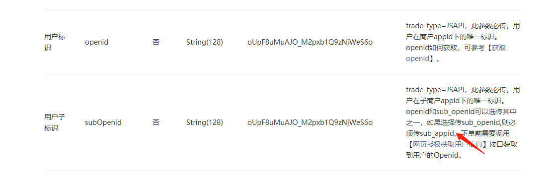 5.强烈建议官方把这个接口的文档完善一下,描述字段和请求参数不匹配,看的人很困惑;openid字段描述里的商户和subOpenid字段描述里的子商户有什么区别,该怎么理解?