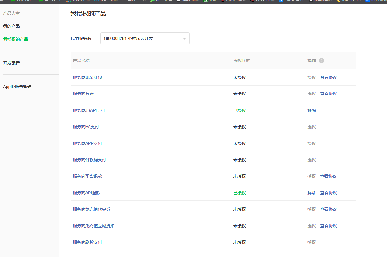 2.经检查APPID和商户号已成功绑定且已经授权给小程序云开发,如下: