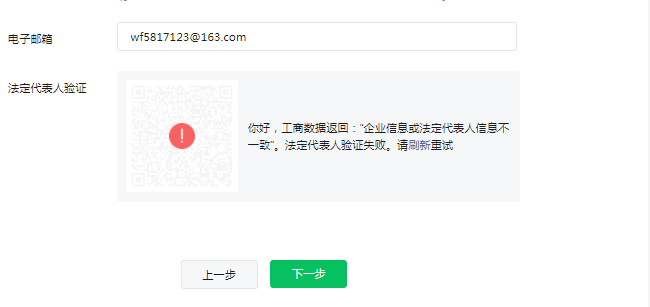 公众号认证 人脸核验那一半过不去 一直提示企业信息或法人不一致 ,自己有认真检查过 资料填写的都是对的 有十来天了 一直认证人脸过不了