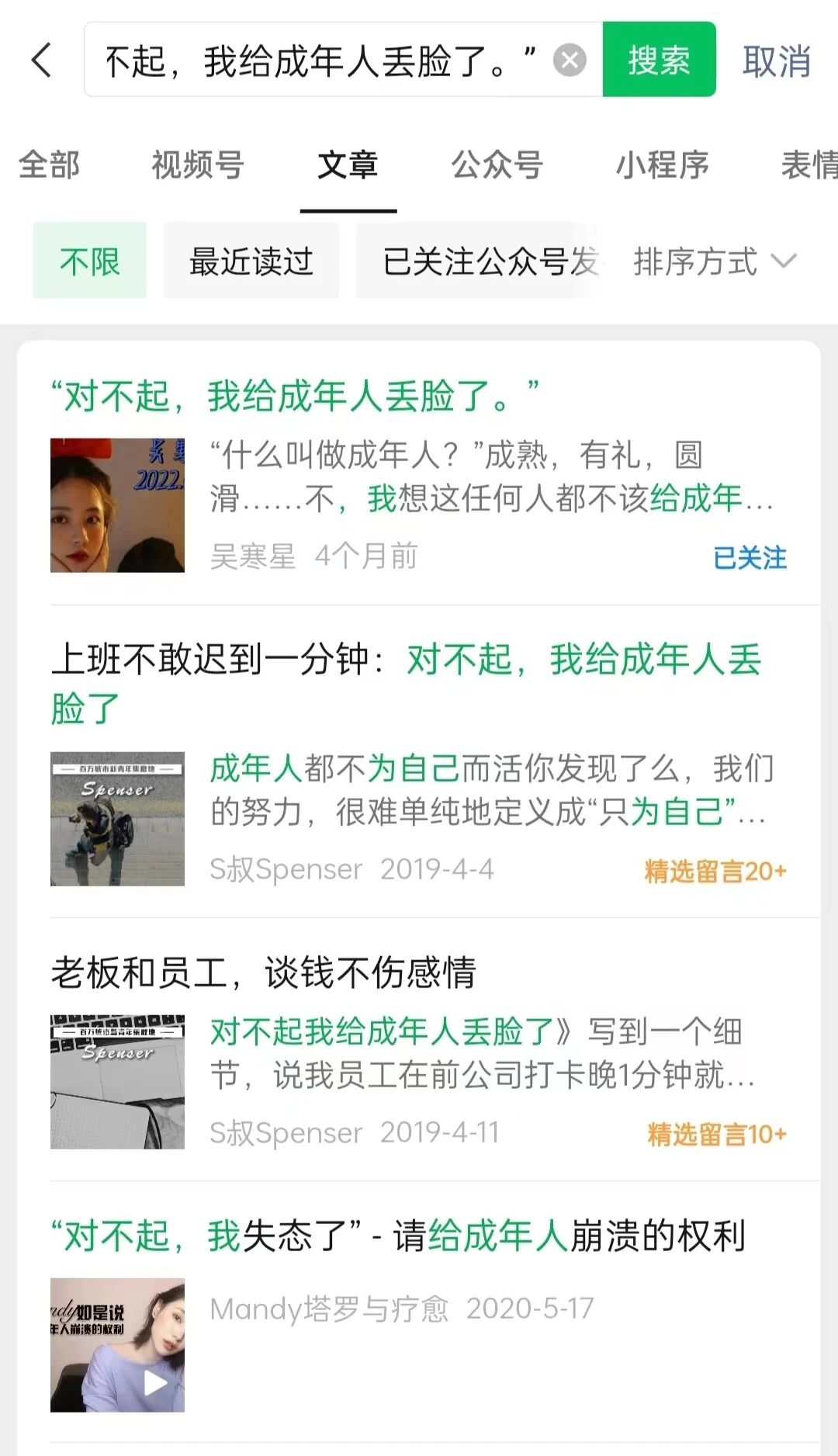 我前几天突然发现公众号的所有文章在“搜一搜”搜索不到了。