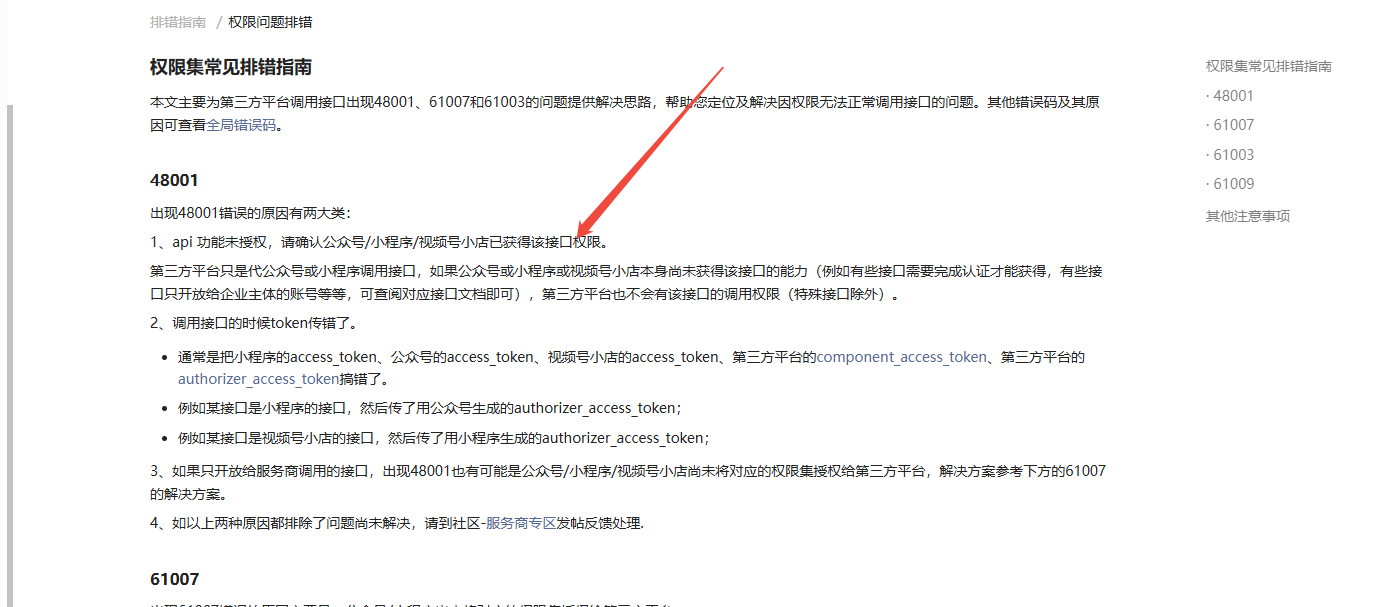 你好,请检查 https://developers.weixin.qq.com/doc/oplatform/Third-party_Platforms/2.0/troubleshooting/third_party_authority_instructions_troubleshooting.html