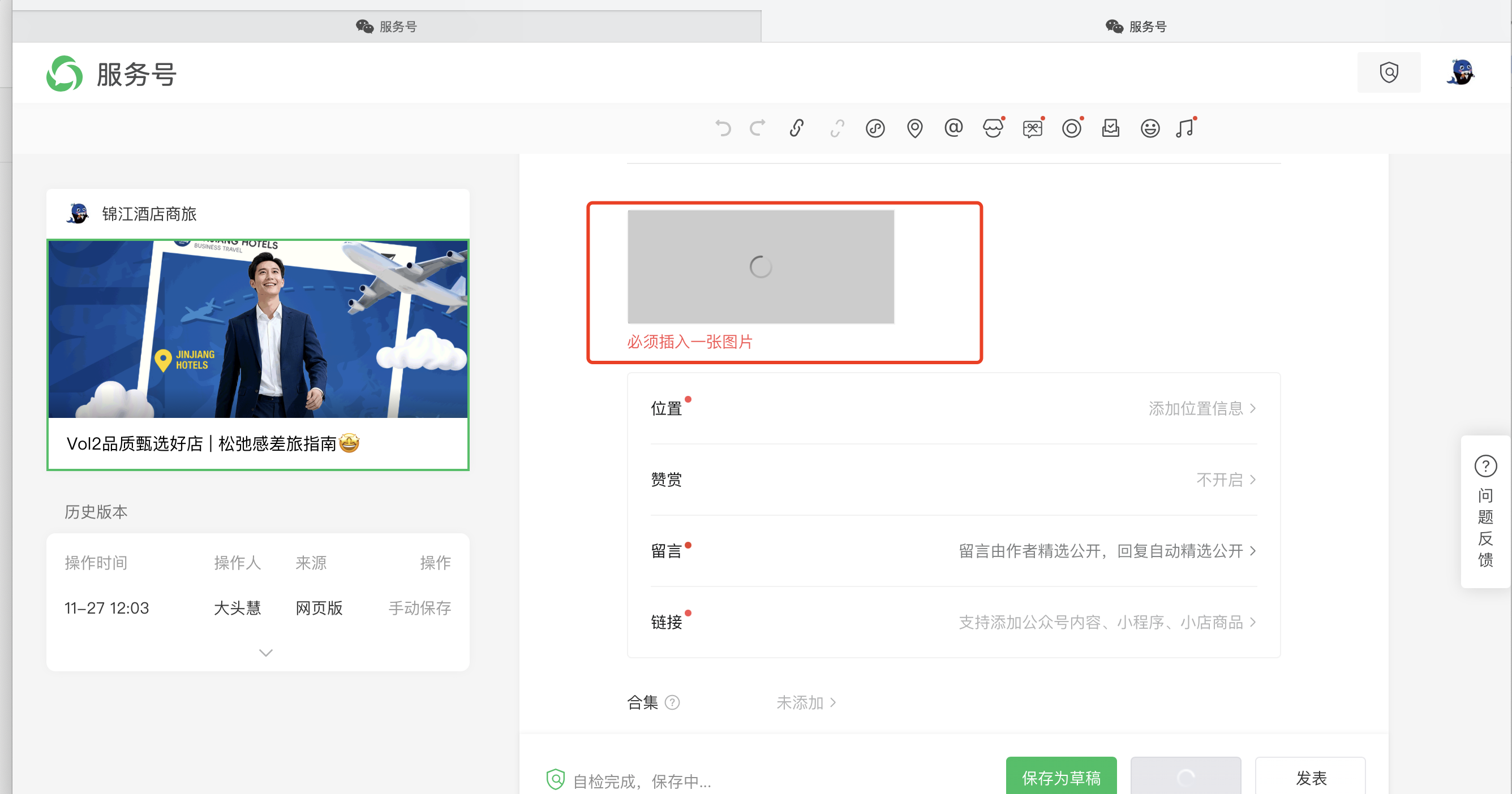 【页面链接】: https://mp.weixin.qq.com/cgi-bin/appmsg?t=media/appmsg_edit&action=edit&type=77&appmsgid=100008822&isMul=1&replaceScene=0&isSend=0&isFreePublish=0&token=313490370&lang=zh_CN×tamp=1764215714777