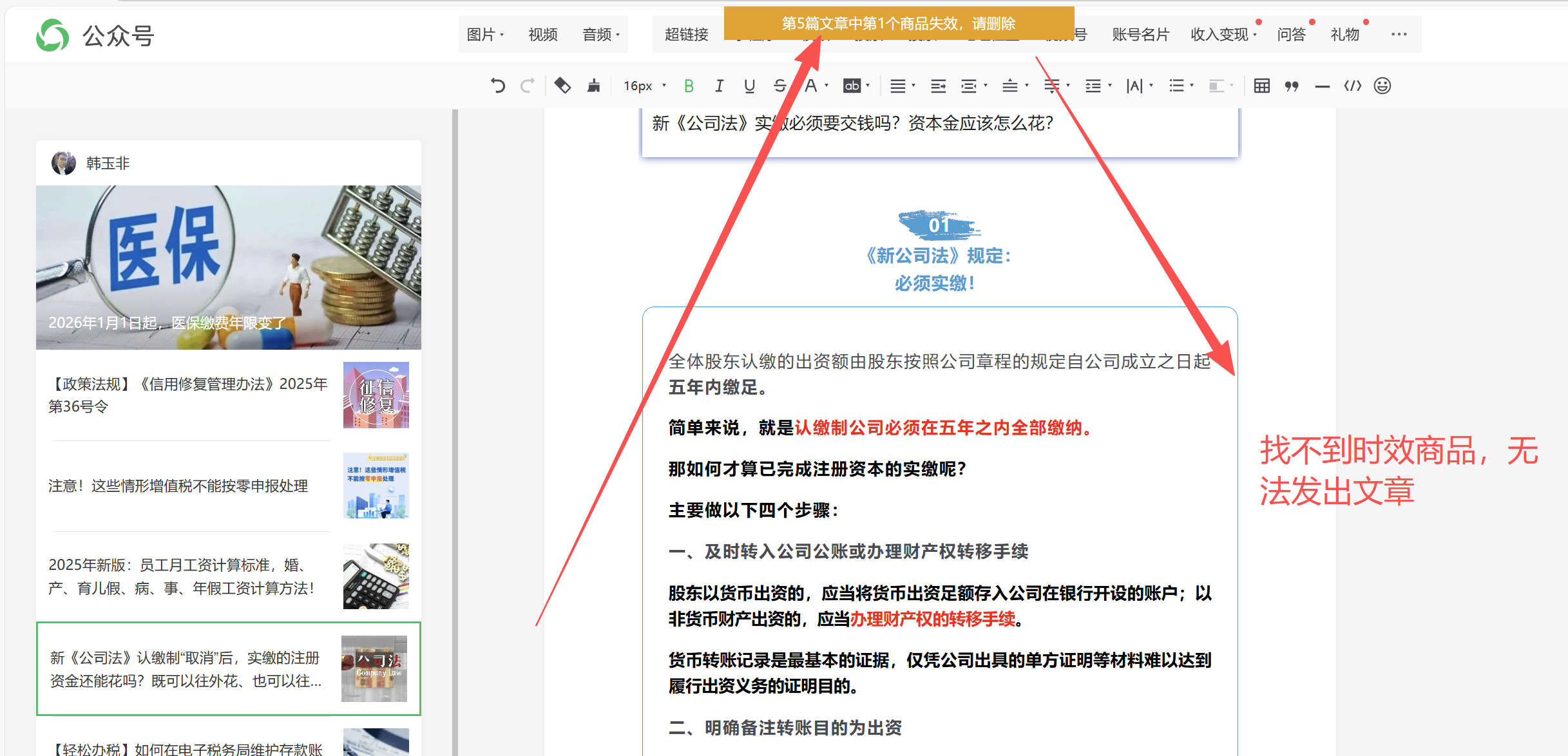 你好,如找不到失效商品,尝试删除文章后重新新建草稿编辑