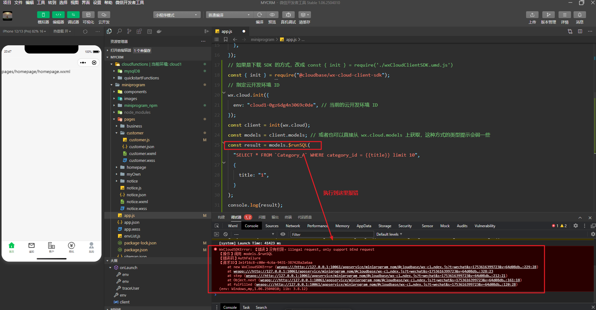WxCloudSDKError: 【错误】没有权限。illegal request, only support bEnd request
