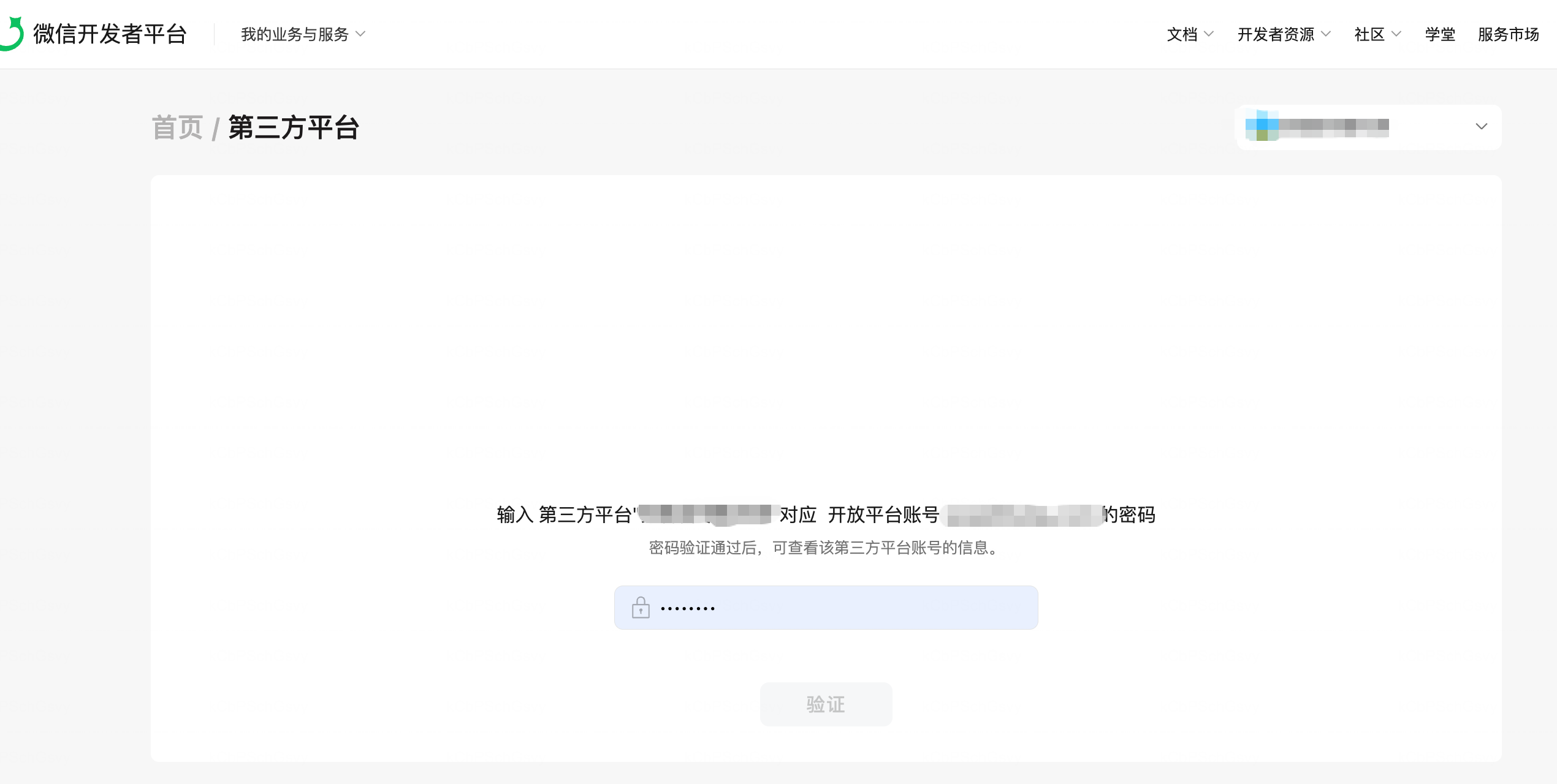 你好,具体是哪个第三方平台appi、open账号?输入密码后点击验证没反应吗?还是一直置灰无法点击?清缓存、换浏览器重新登录或者切换无痕模式再试试,还是不行的话补充对应第三方平台appid、open账号、操作时间点、F12后再次点击验证按钮看下network是否有报错?提供页面截图