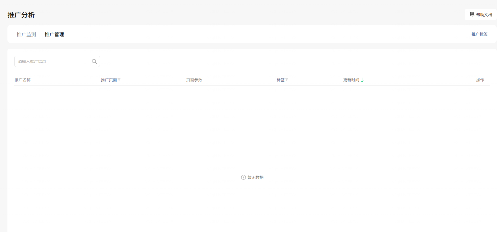 可能是不具备相关权限,可以在【平台管理-成员管理】查看下,推广分析至少需要“访问分析权限”