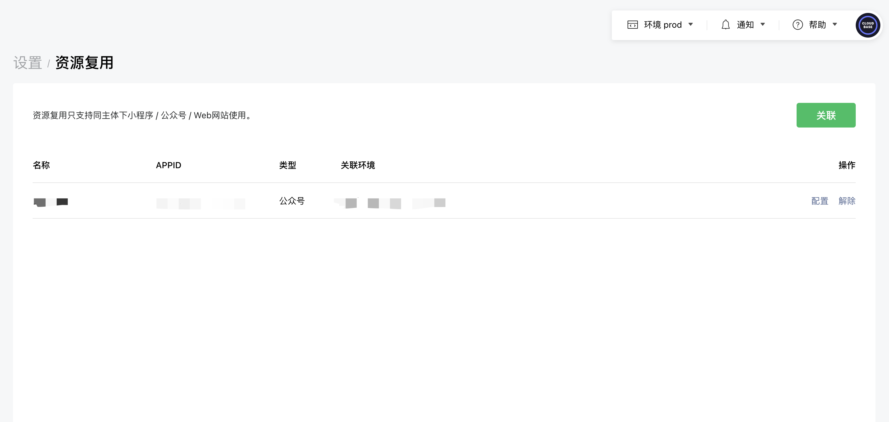 开发者登录资源复用的账号,前往 云托管控制台 - 设置 -资源复用 进行关联操作即可。