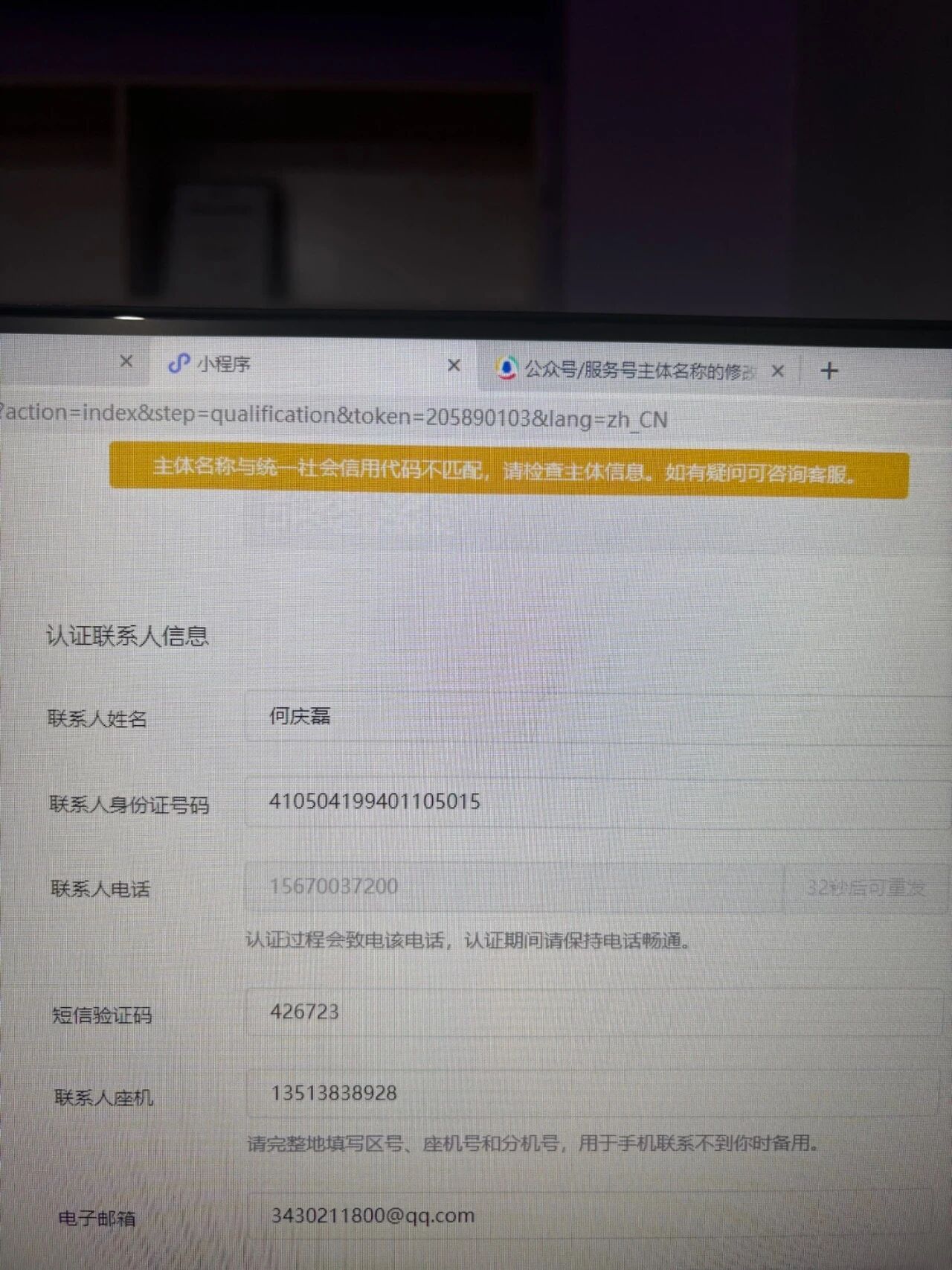 微信认证的时候一直不成功,显示如图核实过企业信息 和营业执照一致,法人信息也一致,为什么审核未通过