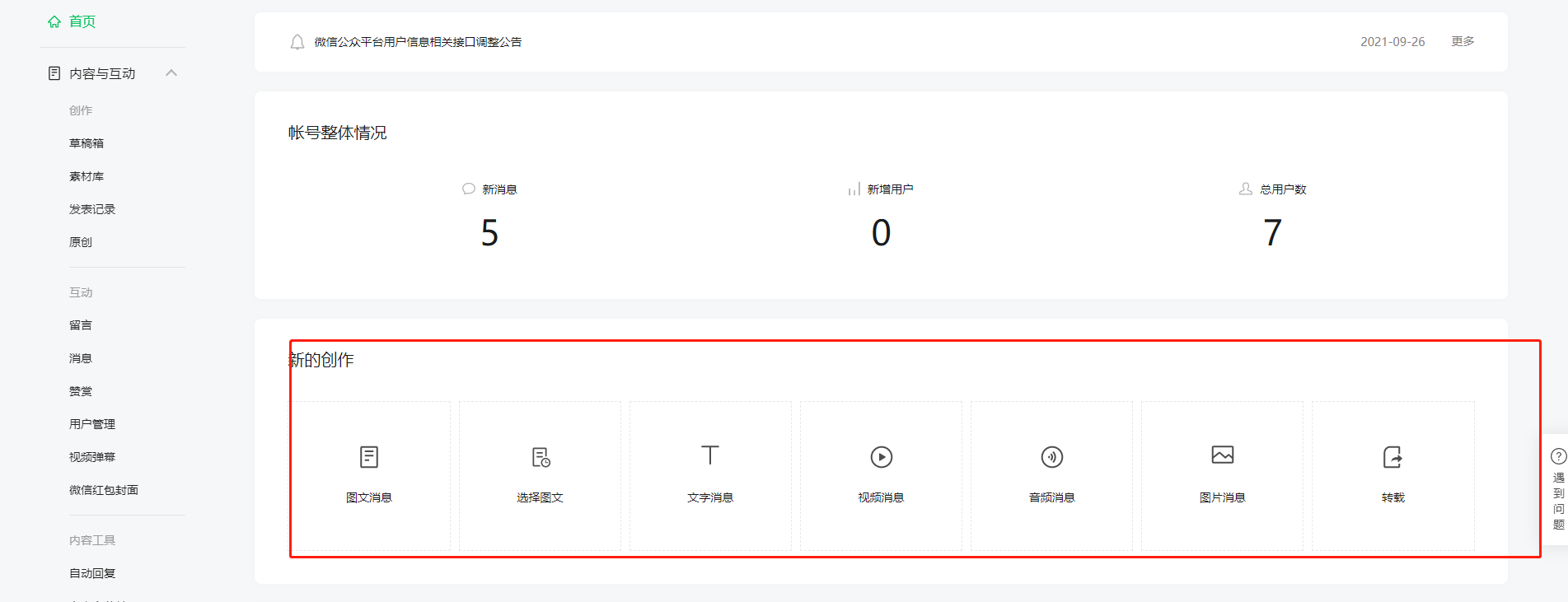 亲,新测的系统内我的公众号是没有发文功能的,左侧也无草稿箱 完全没办法发文了,而且也找不到菜单栏了 想添或减一个项目都不知从哪入中。左侧的创作功能也是灰色不能按的。我的id是gh_42714966aa94,请相关人员速解决,且你们的电脑微信客服方基本答非所问。