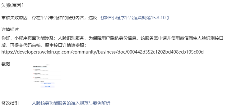 描述:用户通过小程序录入自己或共同入住人的个人信息(姓名,手机,身份证,人脸照片)。其中人脸照片用于智能门锁的开锁,全程都是用户本人操作。无需在小程序做人身核验,审核失败时提出的接口无法满足使用需求