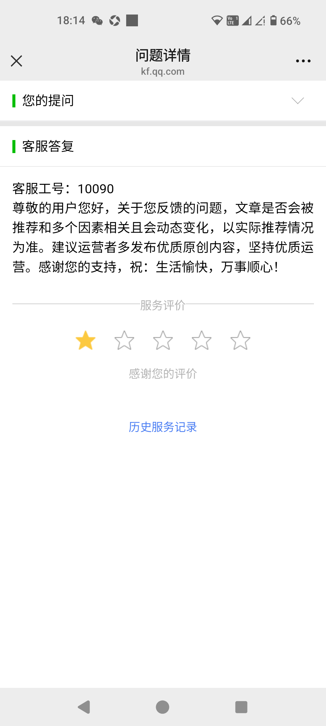 我的文章限流后咨询客服多次收到的相同模板答复,仍无法解决问题,也未对我提出的具体情况和明确疑问作出任何回应。我的文章内容全部原创、无拼凑、无抄袭、无重复选题,无任何违规记录;在无推荐流量的情况下,依然获得较高的点赞、分享和评论量,说明内容质量具备真实的用户价值与传播力。请问:账号是否被某些系统策略列入限制推荐名单?是否存在误判、风控、降权等情况?如有,是否可以申诉?平台能否提供具体的优化建议,而不是继续以“建议优质运营”作为笼统回复? 我真诚希望平台能认真看待一个坚持内容质量创作者的实际处境,而不是反复发送无法解决问题的答复。