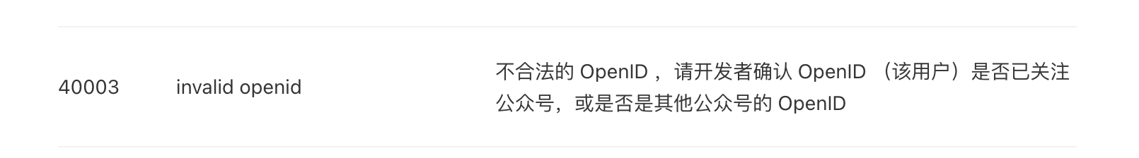 你好,报错40003,显示openid无效,应检查所传入的openid的格式是否错误等