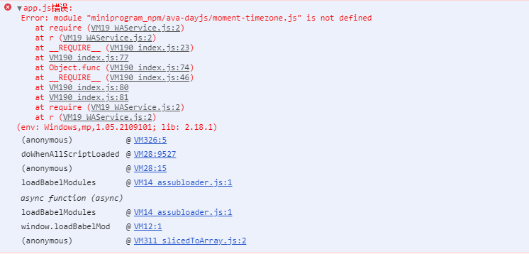 Error: module "miniprogram_npm/ava-dayjs/moment-timezone.js" is not defined
