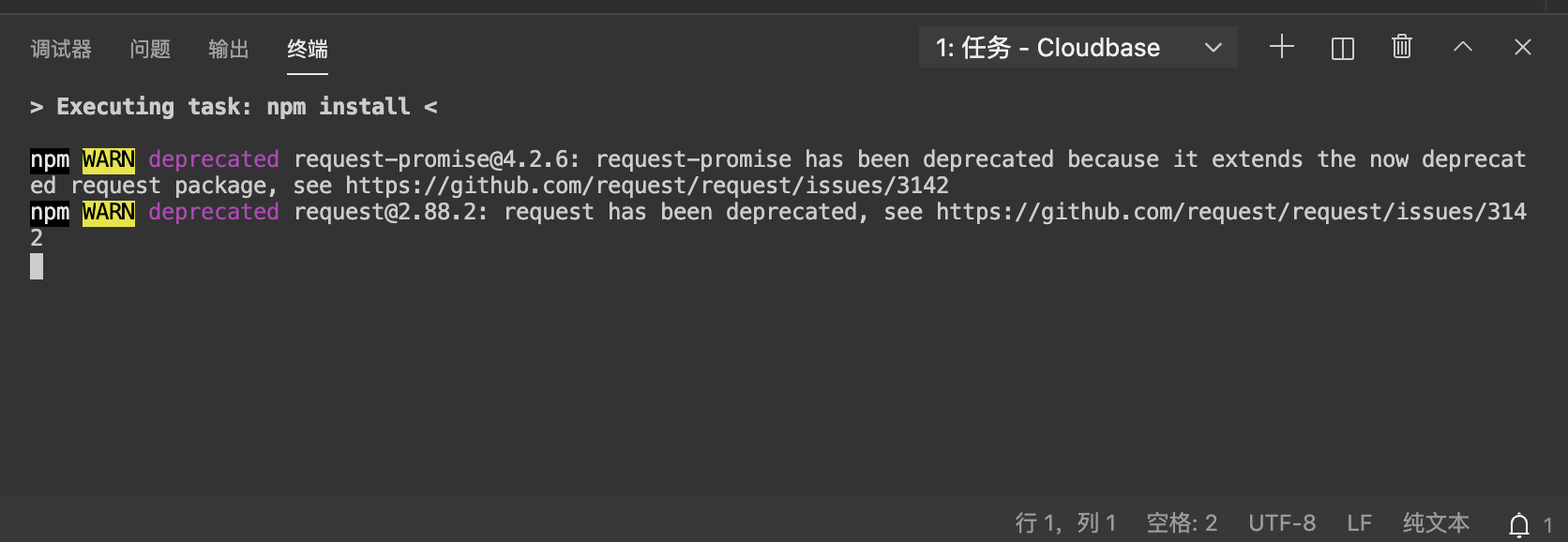 云函数本地调试会自动检查是否安装了 node_modules 依赖,如果未安装,将自动拉起终端执行 npm install。