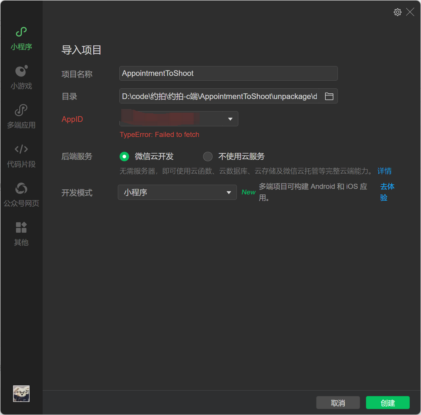 项目设置: 小程序/开发/工具/界面/项目页卡
