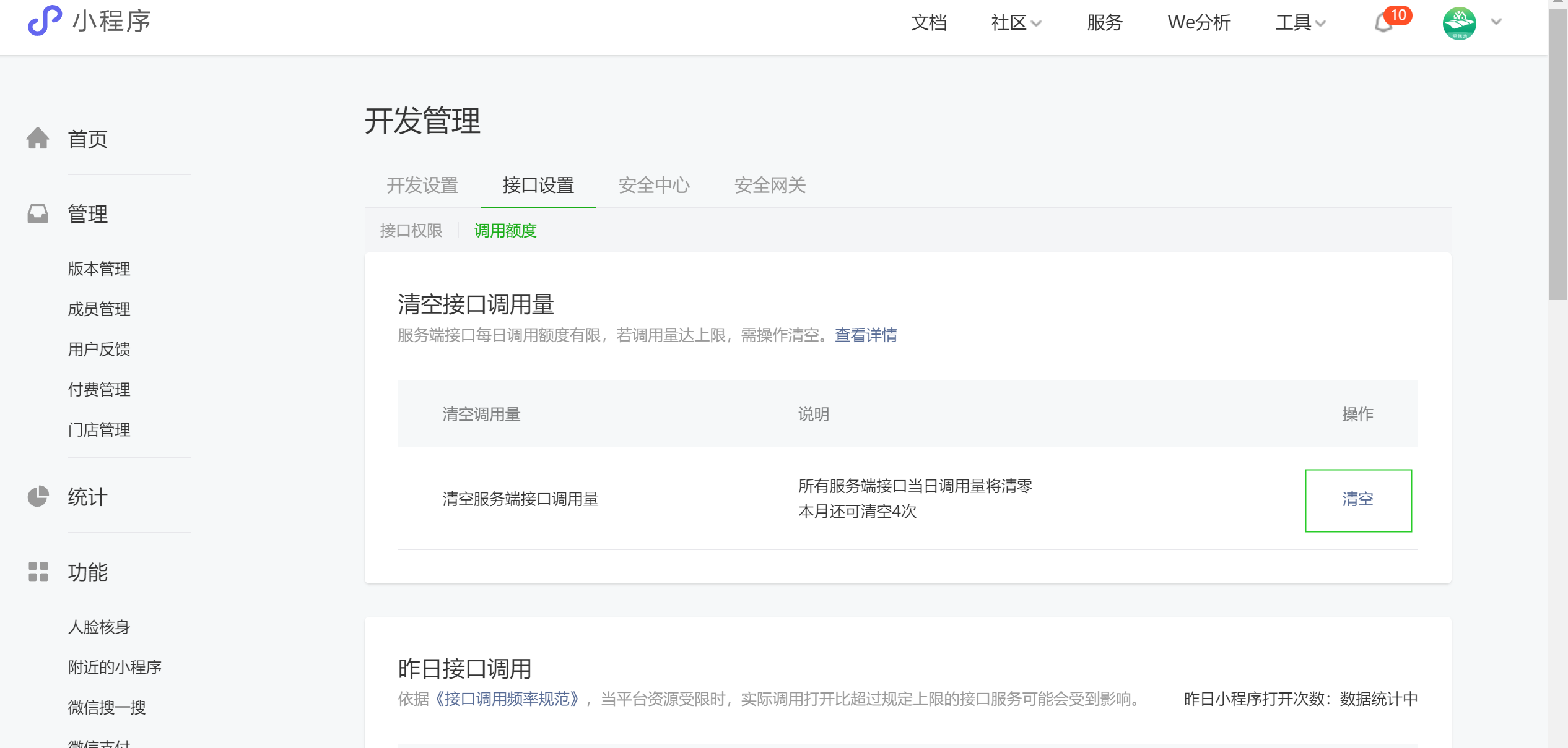我们小程序属于政务民生类,开通了小程序人脸识别功能,近期由于用户量增长超过一定次数后需要手动后台重置,10次清空用完后如何再增加次数?
