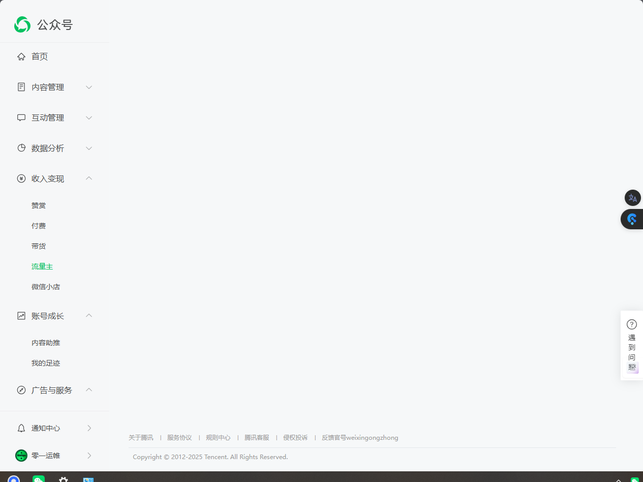 我的账号流量主这里为啥是空白的,啥也没有,是我的账号有问题吗?还是什么原因?多谢!