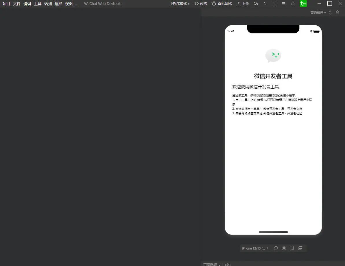 我是一个新手,想做一个小程序,但是,当我打开微信开发者工具是一片空白,哪位大神指教一下,是什么原因?谢谢