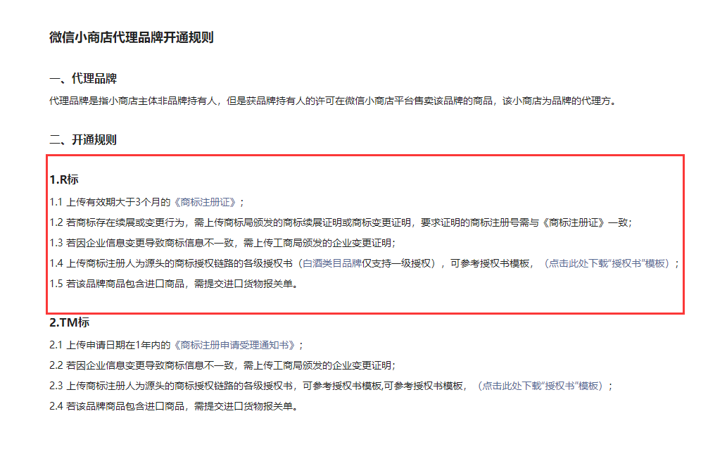 很想知道有哪位商家能提供实际审核要求的文件~~~ 真有点被这个要求吓到了,可能微信是希望招到国际超级品牌在中国的总代吧,象我们这种小代理商小商家是完全没有机会的。如果我们小商家不是微信小商家的招商对象的话,也没有问题,可以在前台直接列明。也不用让我们花时间准备授权文件,然后变向拒绝。设计这样的行政壁垒,有什么用的?