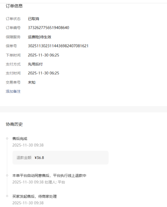 订单后台有申请退款的相关记录,但是我们吉客云erp:wxbf330d4617c5bbd9 没有收到相关的消息,只有一个正向订单推送的消息