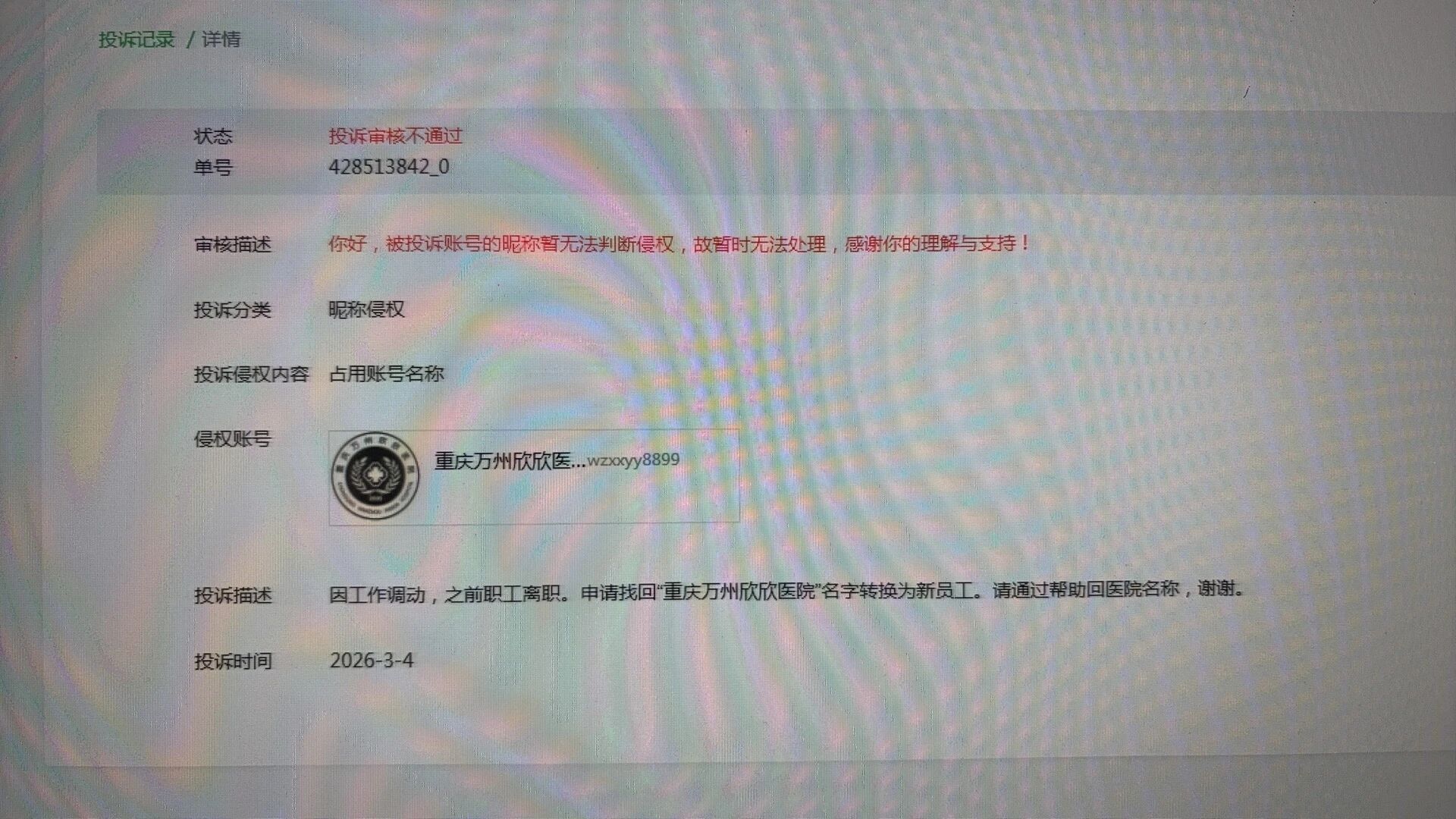 公众号名称员工已经离职,重新用新微信号想找回以前的医院名称,怎么找回 无法使用名称。
