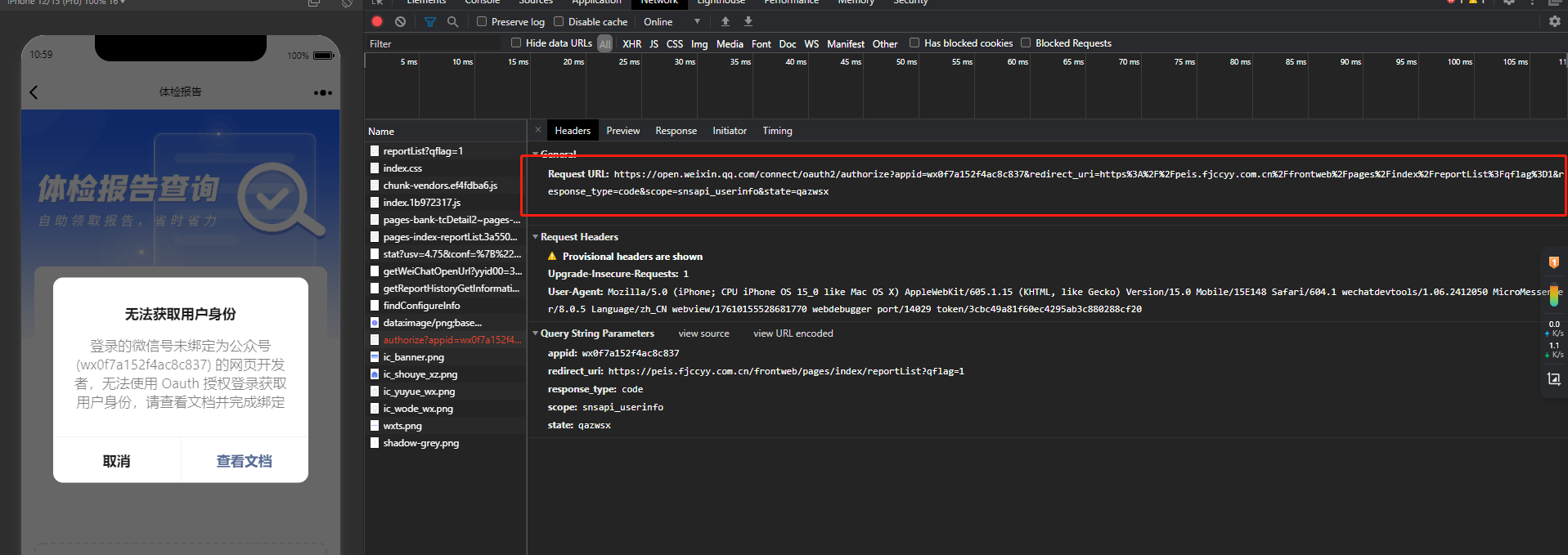 你好,这是网页授权,不是普通的跳转(这代码绝对不是你敲的,联系下团队内的其他开发者)。提供下网页授权的请求包和后台配置网页授权域名截图,截图中必选包含服务号的头像