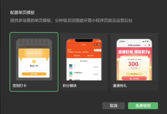 能力,工具新增支持单页模板功能,可插件式快速上线小程序业务,提供前端示例源码及可视化管理后台。查看详情