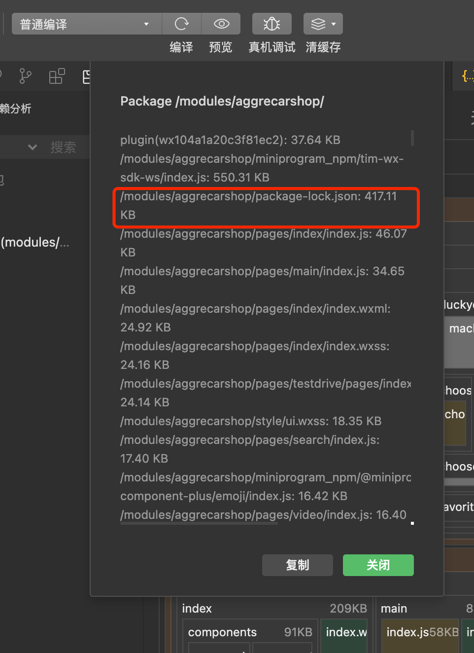 依赖分析里面没有package-lock.json了,但是预览的上传列表里没有忽略package-lock.json。