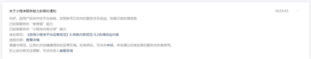 但下午莫名其妙的还是收到了违规的消息。