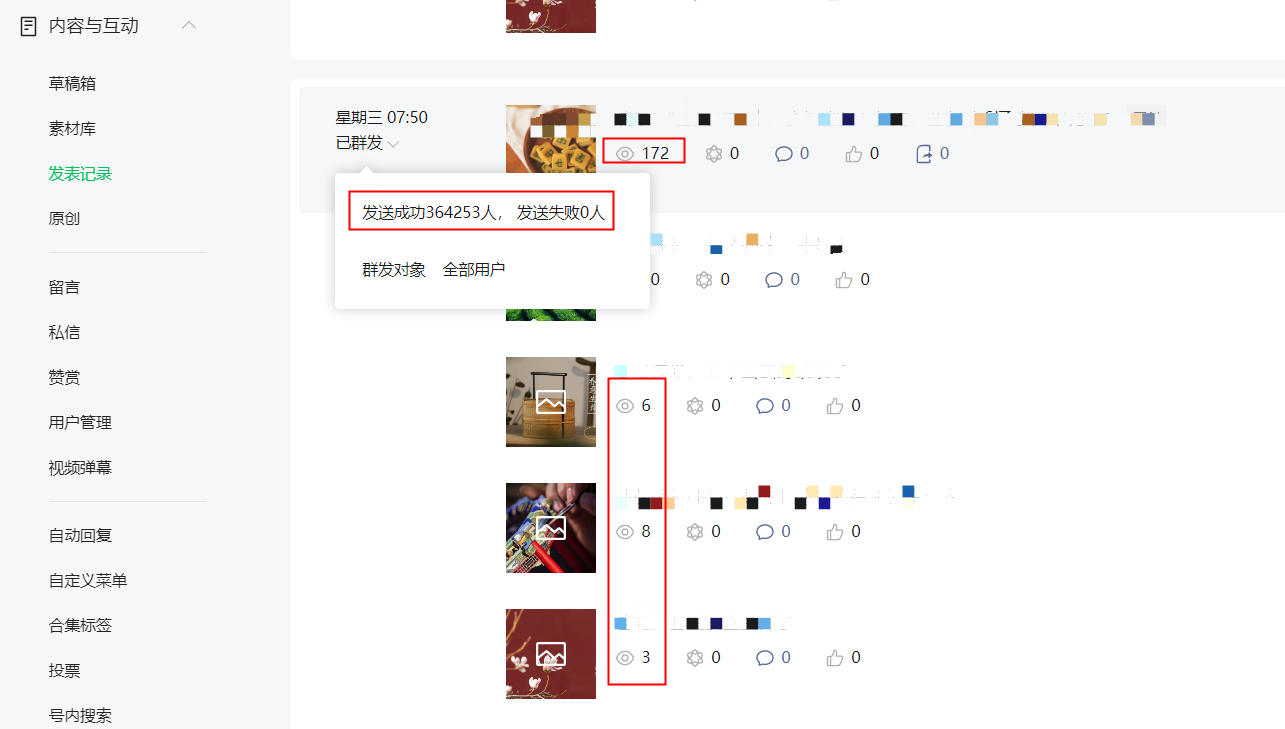 问题补充描述:显示群发所有粉丝,实际只有几千人收到,阅读量数据极差。