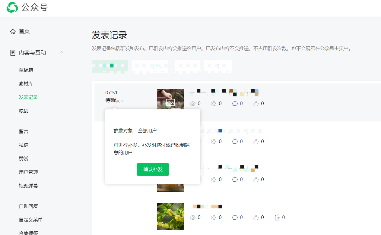 你好,如果补发失败无法成功群发。你可以尝试直接重新提交群发再看看是否可以正常