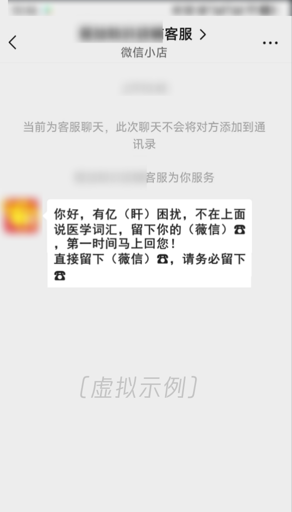 某商家通过客服会话发送法律法规或平台规则明确禁止的信息,暗示能帮助治疗乙肝疾病,违规提供医疗咨询或服务,可能导致用户财产损失或身体健康损害。