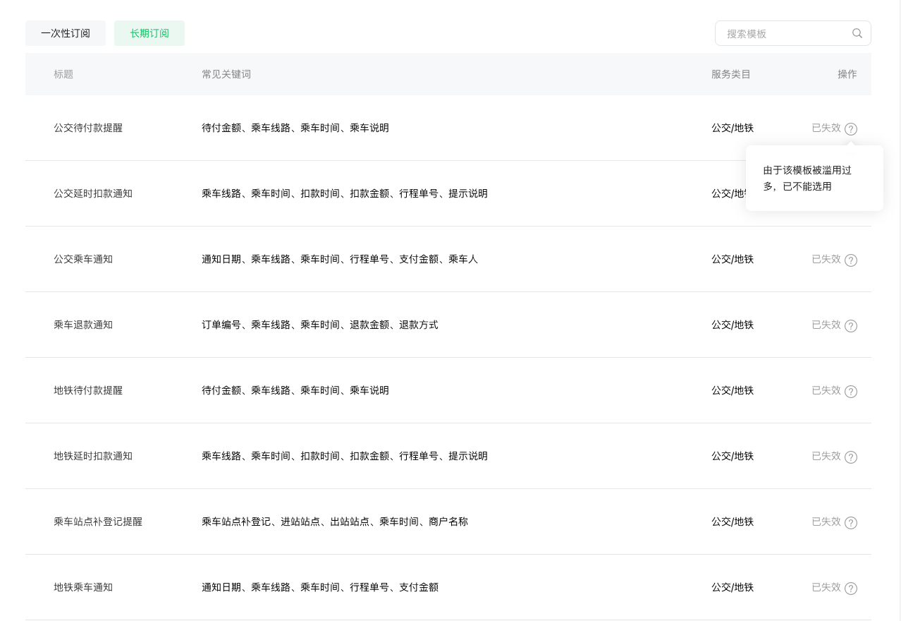 需对该场景进行申请长期订阅,不然只能一次性订阅回对用户以及维护人员造成相关的损失