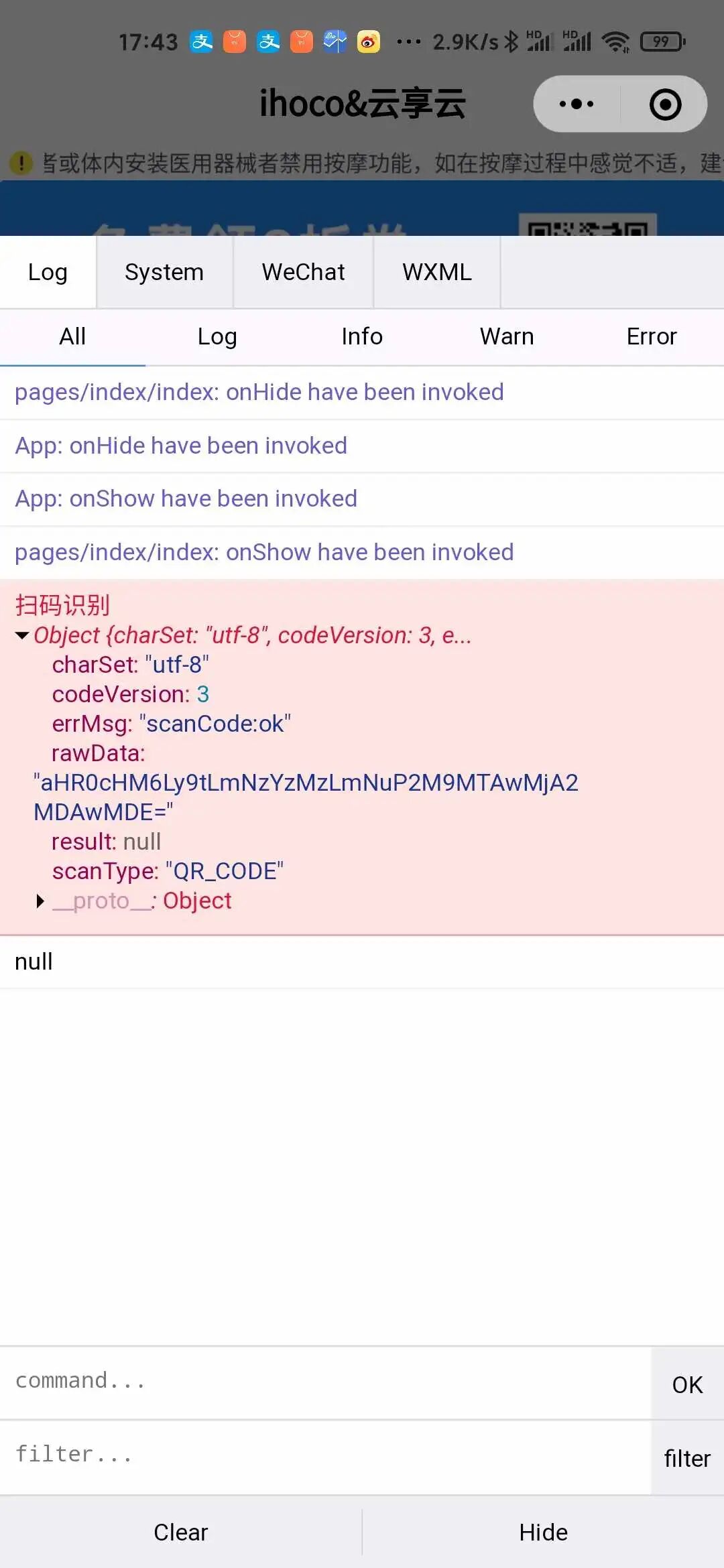 我升级了微信测试版后也是这个问题"result:null", 只能解码rawData获取数据