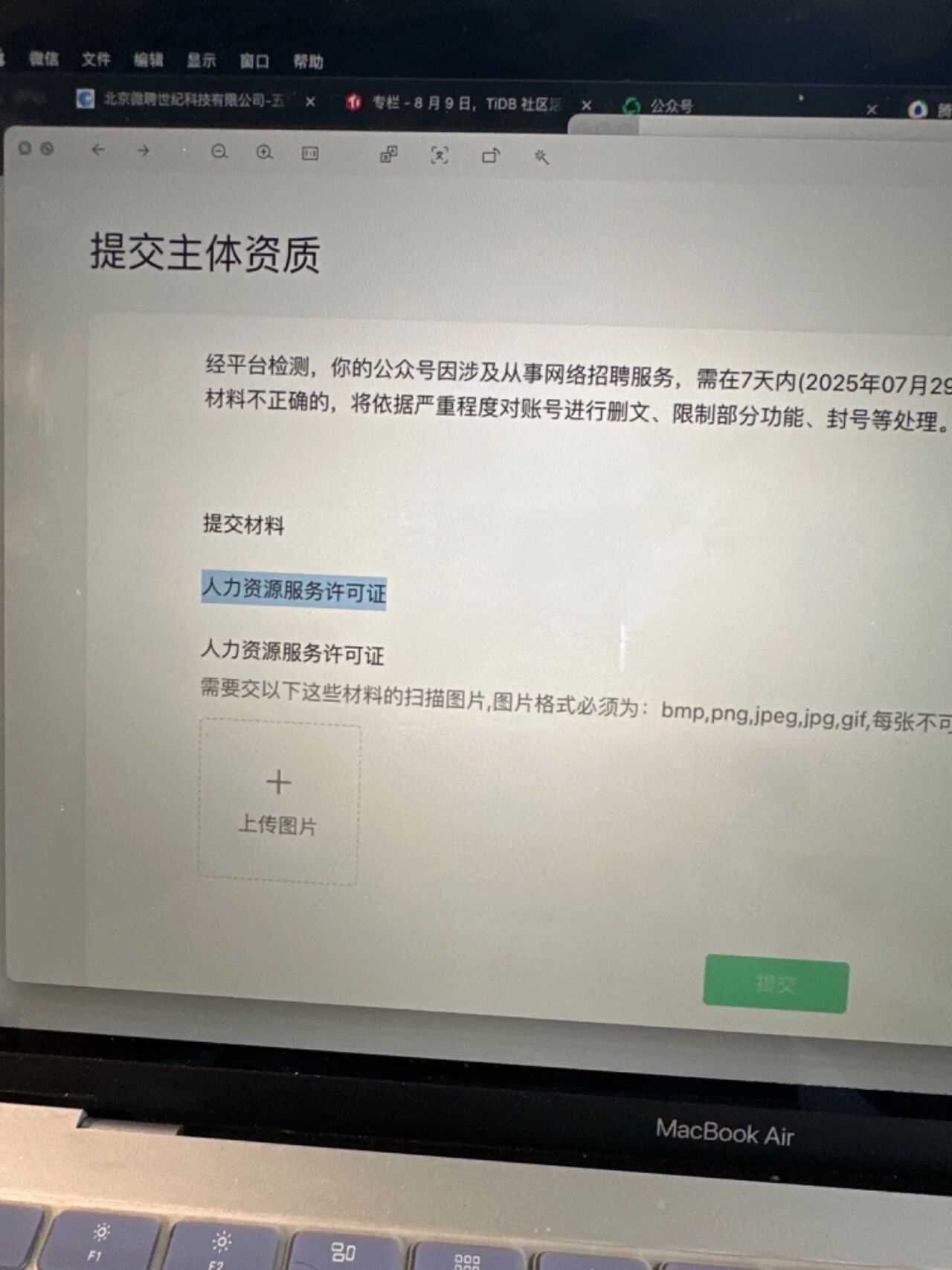 但是原主体没有人力资源许可证,有有证的主体,但是现在又换不了账号主体!你这让人怎么整?更改公众号规则的时候是不是该考虑一下这种情况?那不然运营那么多年的账号,说封禁就封了!