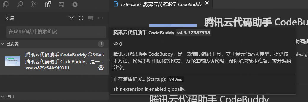 安装插件后,codebuddy一直无法打开,显示正在激活扩展