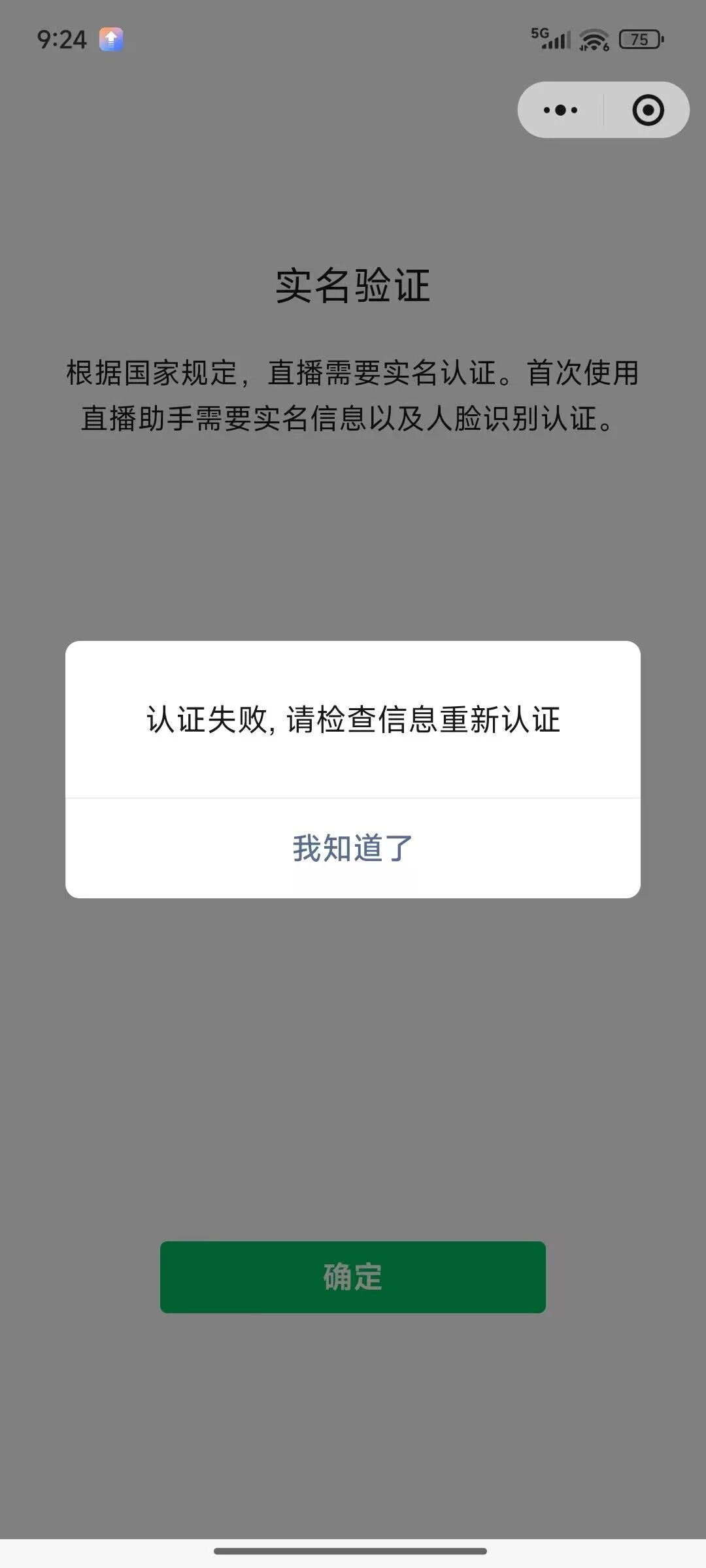 使用小程序直播助手,添加主播,实名认证扫码时报错,怎么解决?主播微信号已实名,已绑定银行卡,实名信息未过期。