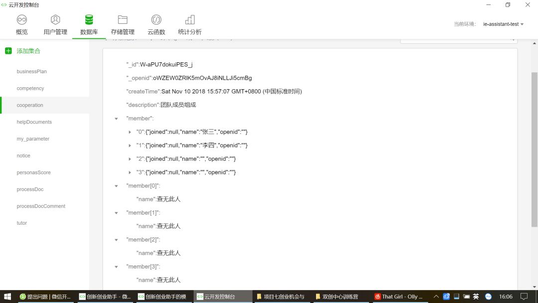 cooperation.doc('W-aPU7dokuiPES_j').update({ data: { 'member[0].name': '张三', 'member[1].name': '李四', 'member[2].name': '查无此人', 'member[3].name': '查无此人', } }).then(res => {}).catch(res => {}) |